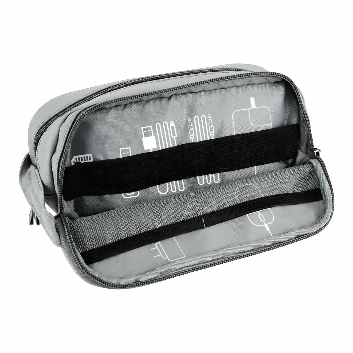 Organizador para accesorios de tecnología con dos compartimentos. Cuenta con divisiones para guardar memoria Micro SD, USB, cables, cargadores, cámara,... Read more
