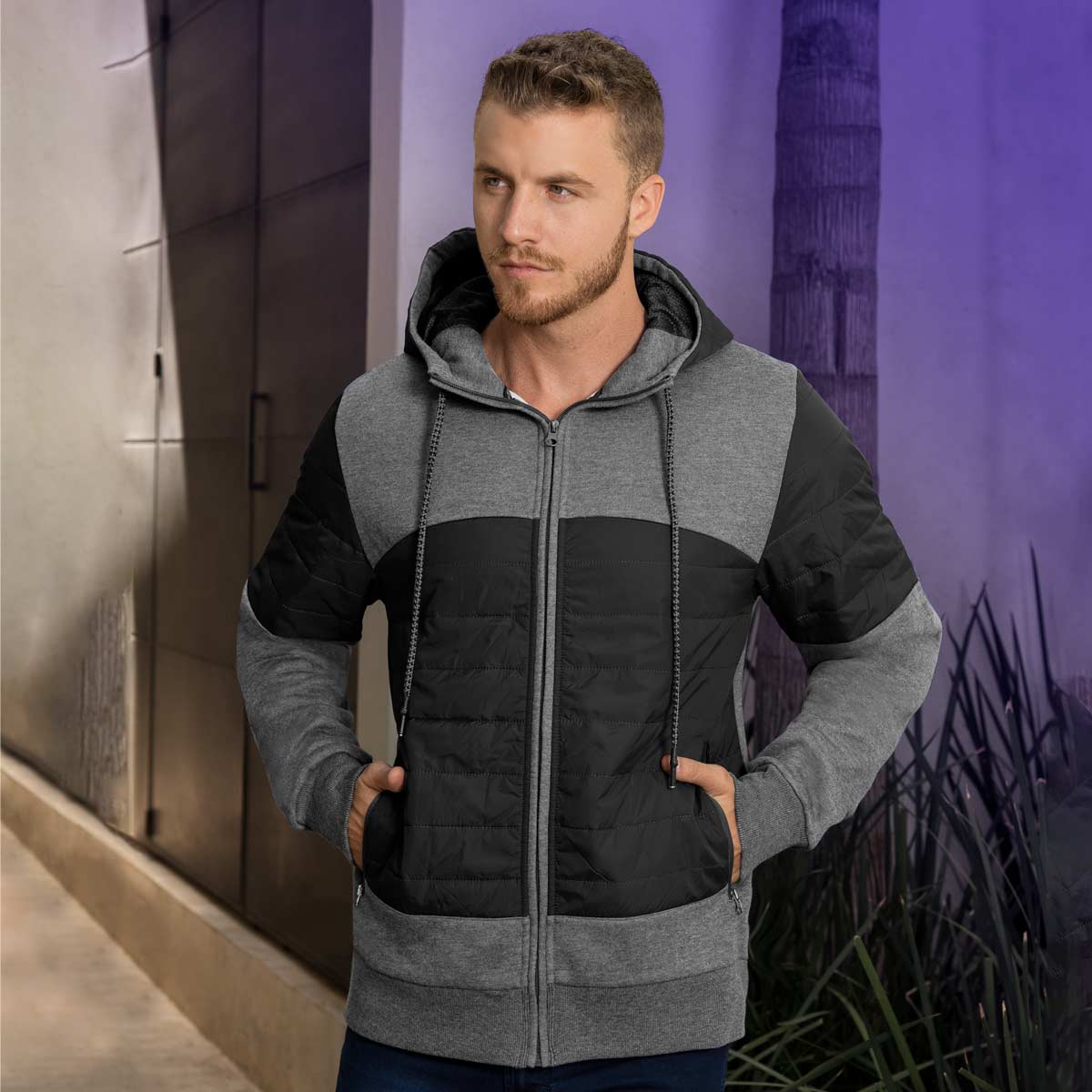 Chamarra con gorro. Exterior 100% poliéster, forro polar cepillado 65% poliéster, 35% algodón. 2 Bolsas frontales y cierre frontal. Read more