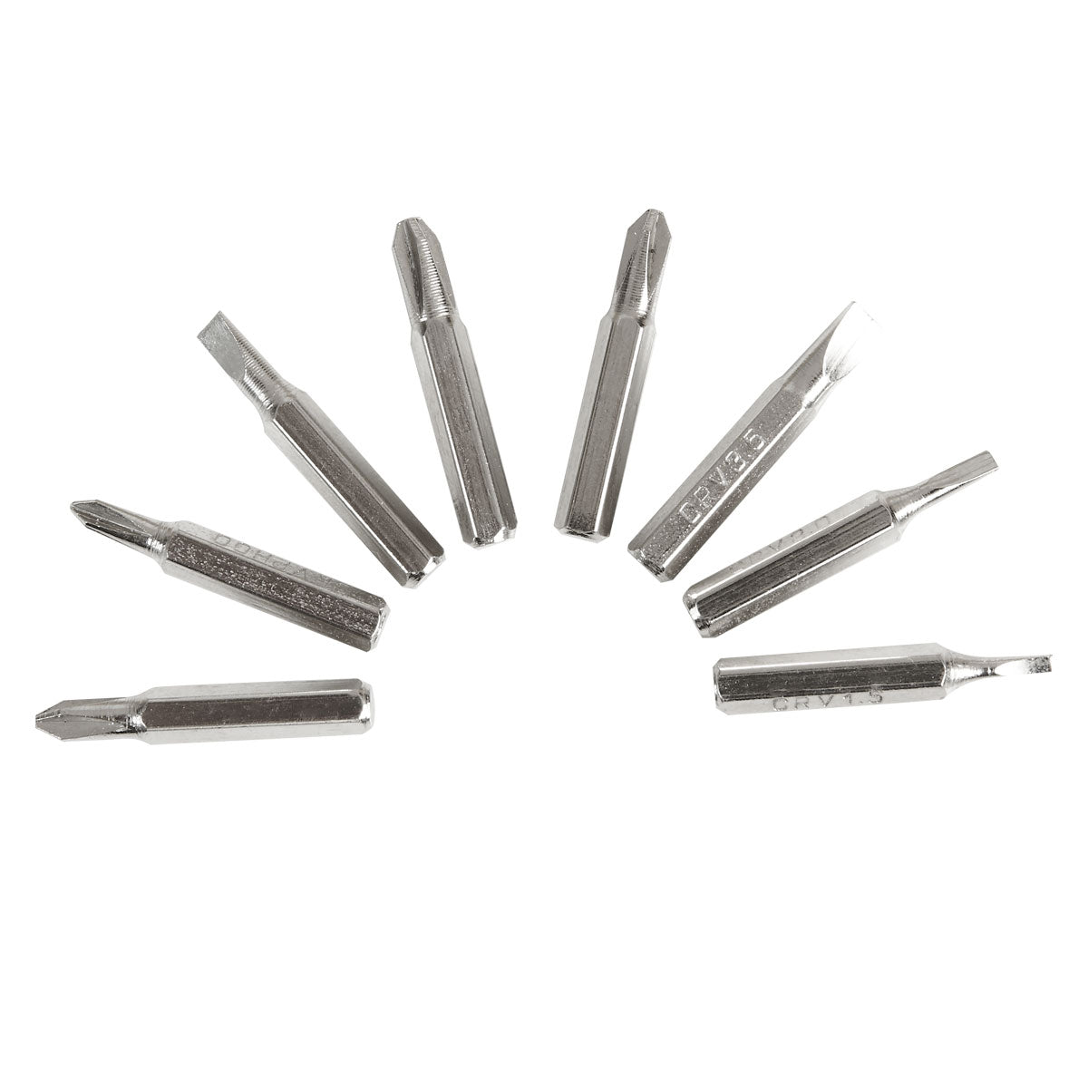 Contiene 8 diferentes puntas de desarmador (4 puntas de cruz y 4 puntas planas). Incluye clip. Read more