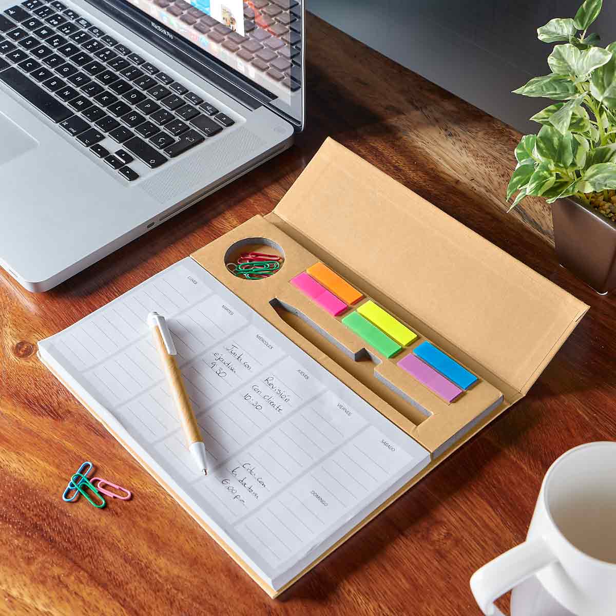 Programador semanal con 100 hojas. Incluye bolígrafo ecológico, clips y banderillas adheribles de 6 colores. Read more