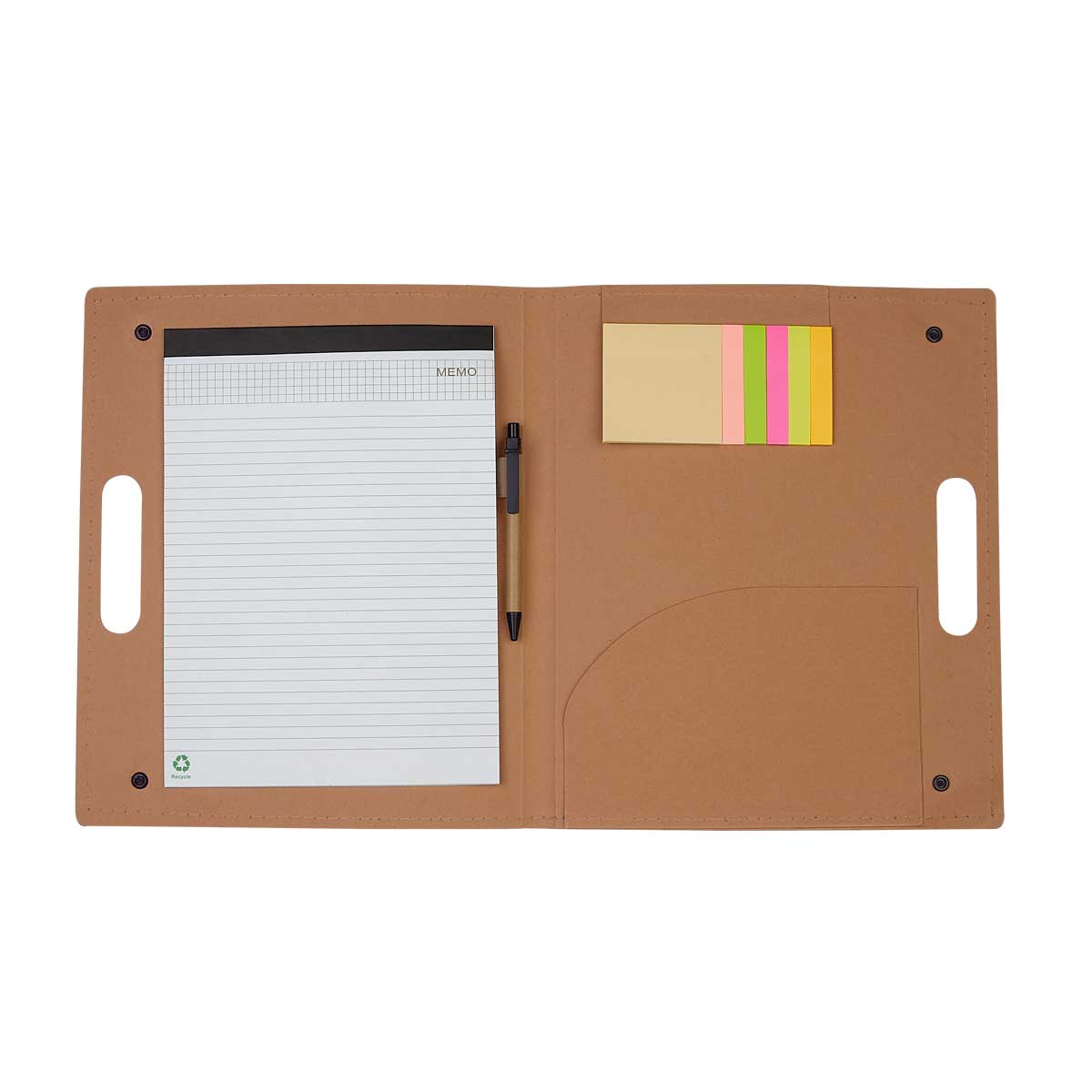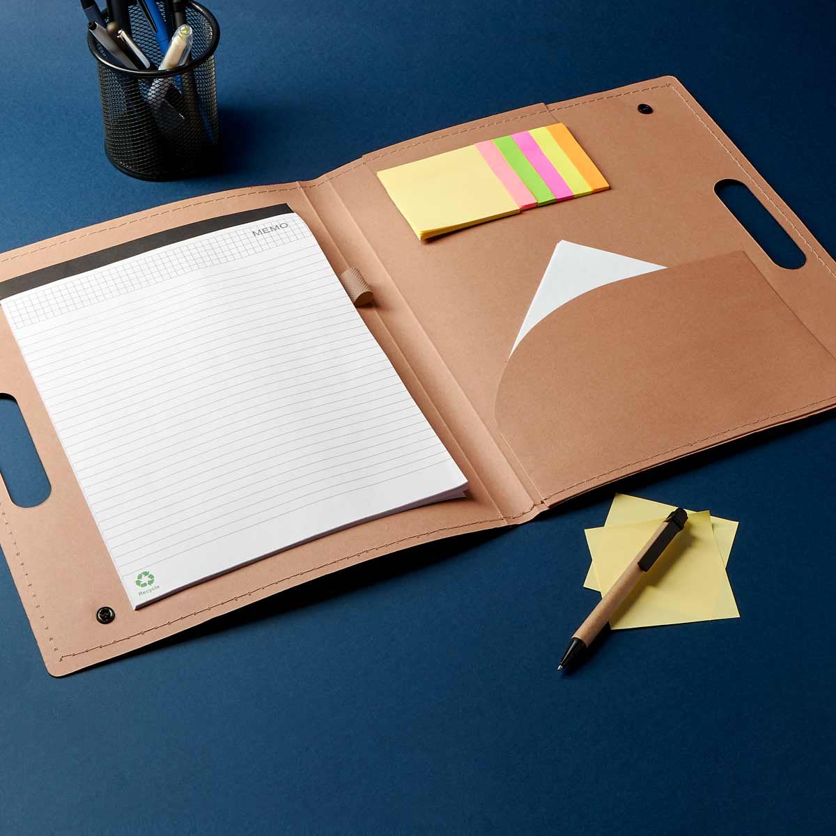 Carpeta ecológica. Incluye block de raya tamaño A4 con 20 hojas, bolígrafo y notas adheribles. Eco friendly Read more