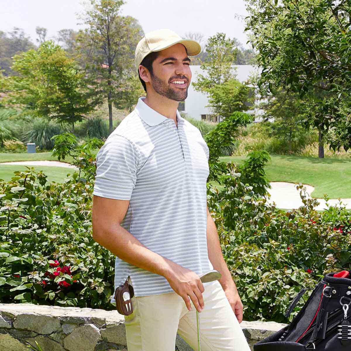 Tela Cool Comfort, repele la humedad, tecnologia Kepp Dry. Diseño de rayas horizontales con protección UV UPF 25. Read more
