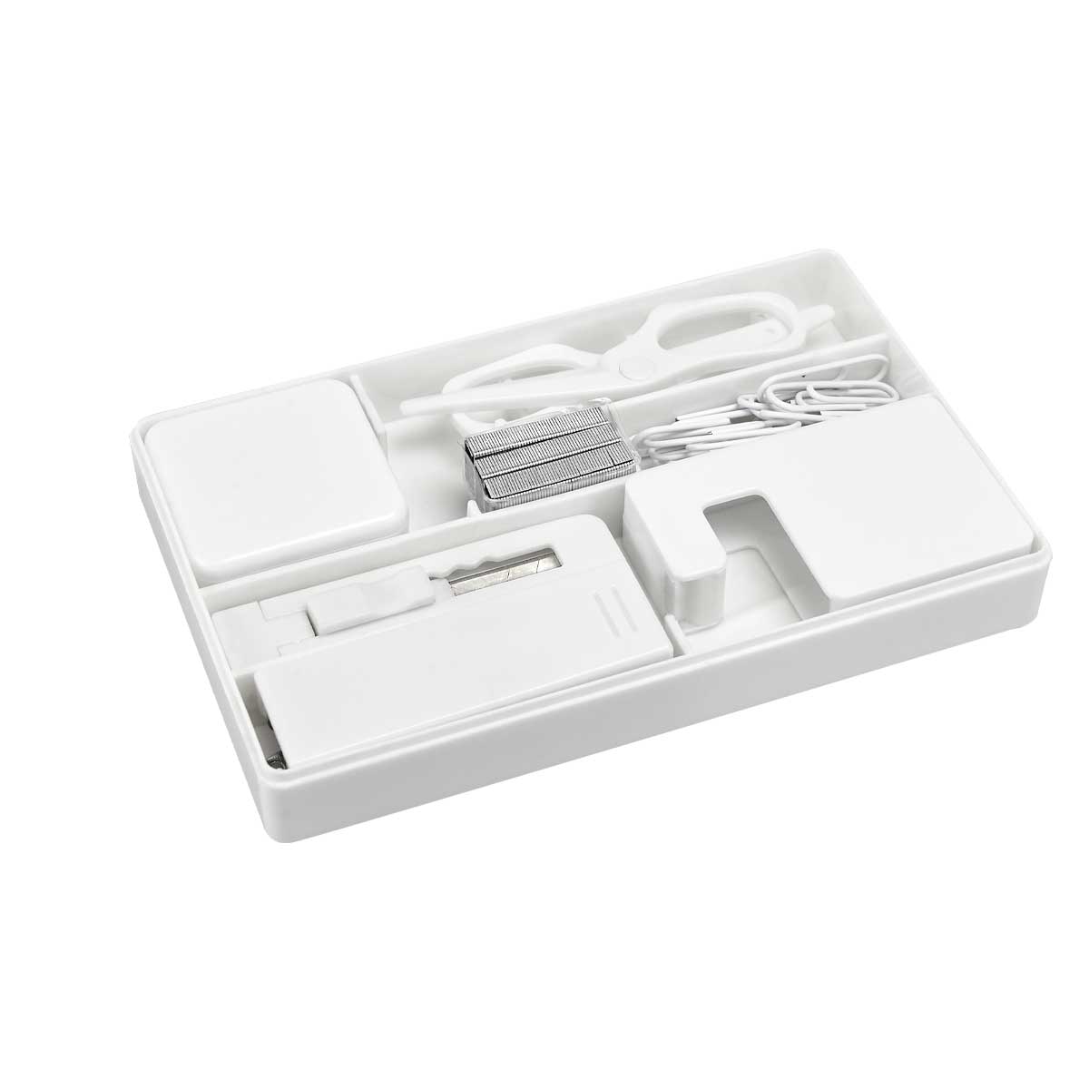 Contiene: Engrapadora, cinta métrica de 1.5 m, clips, cuter, despachador de cinta, tijeras y grapas. Read more