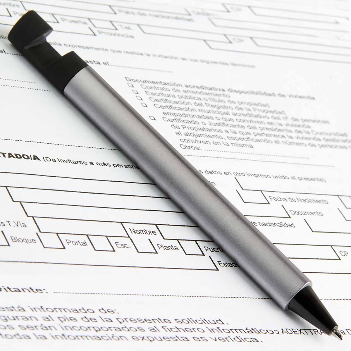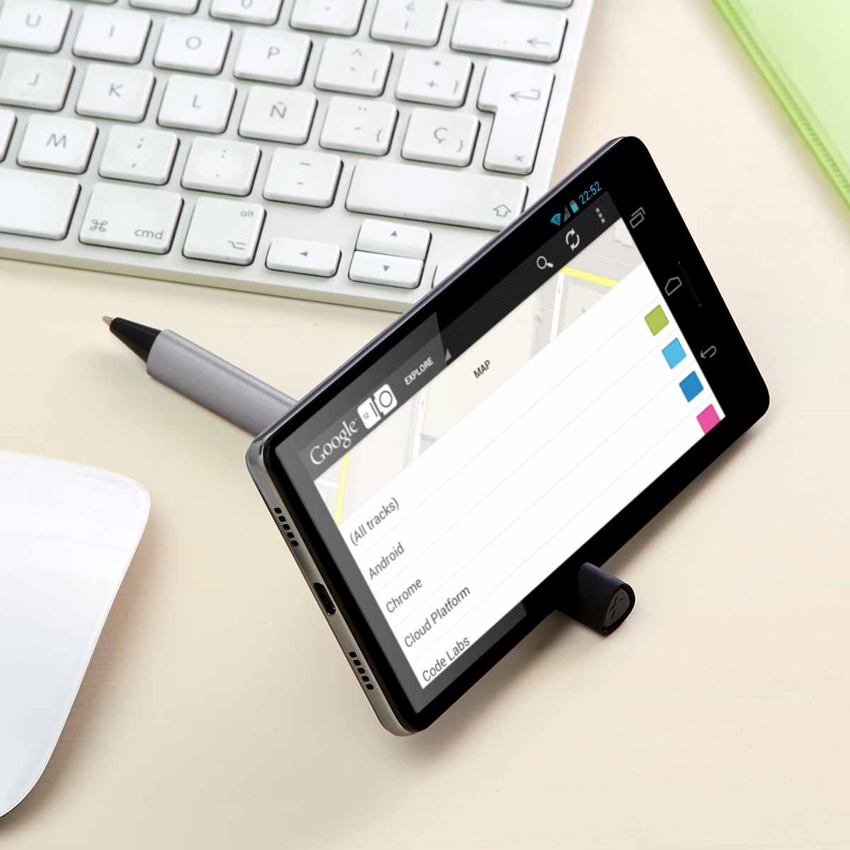 Bolígrafo triangular con base para smartphone. Mecanismo twist. Read more