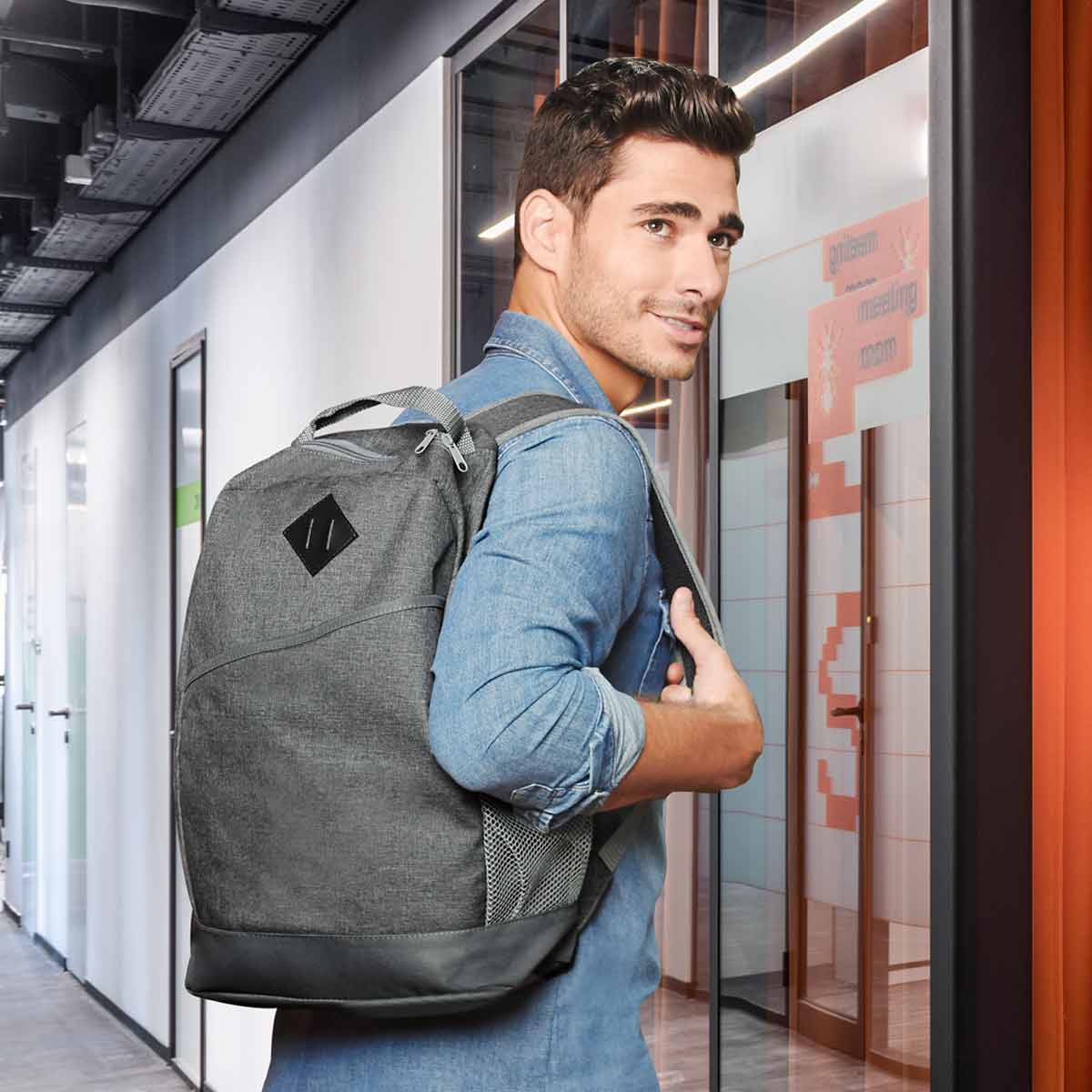 Bolsa principal y bolsa lateral con malla. Espacio para laptop. Read more