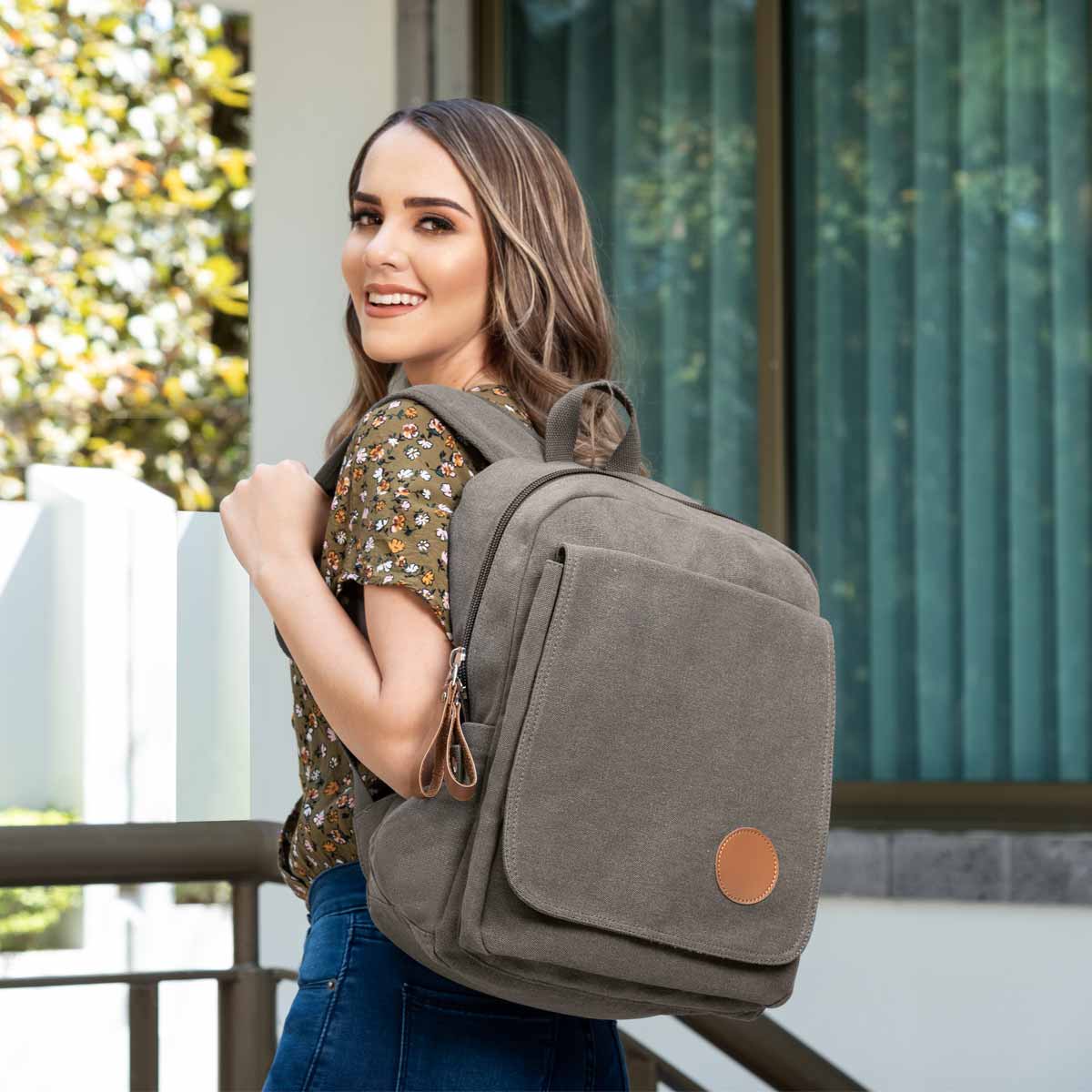 Bolsa principal y frontal. Dos bolsas laterales. Espacio para laptop. Read more