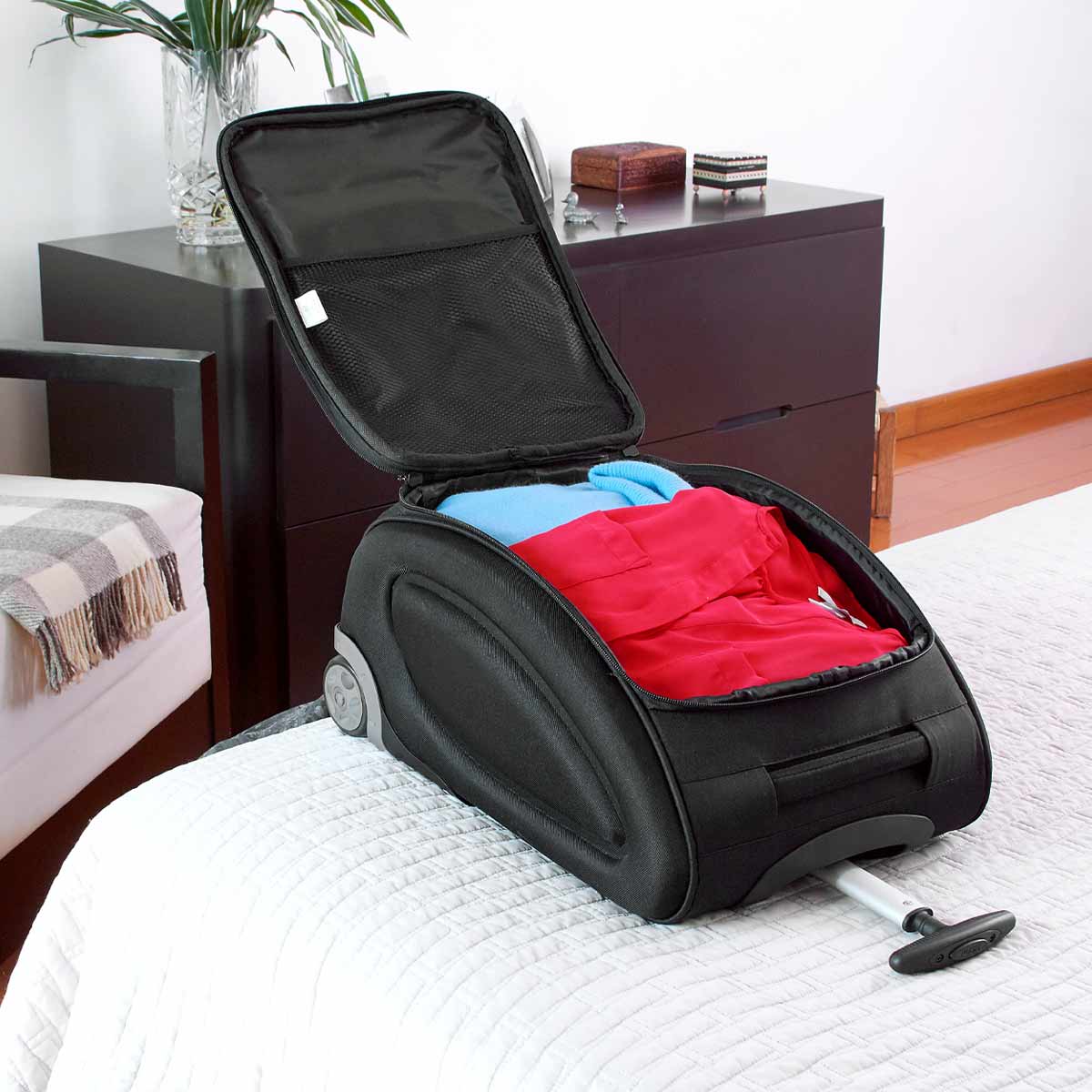 Maleta trolley dos ruedas. Compartimento principal y compartimento interno con bolsa de red con cierre. Bolsa frontal con cierre y... Read more