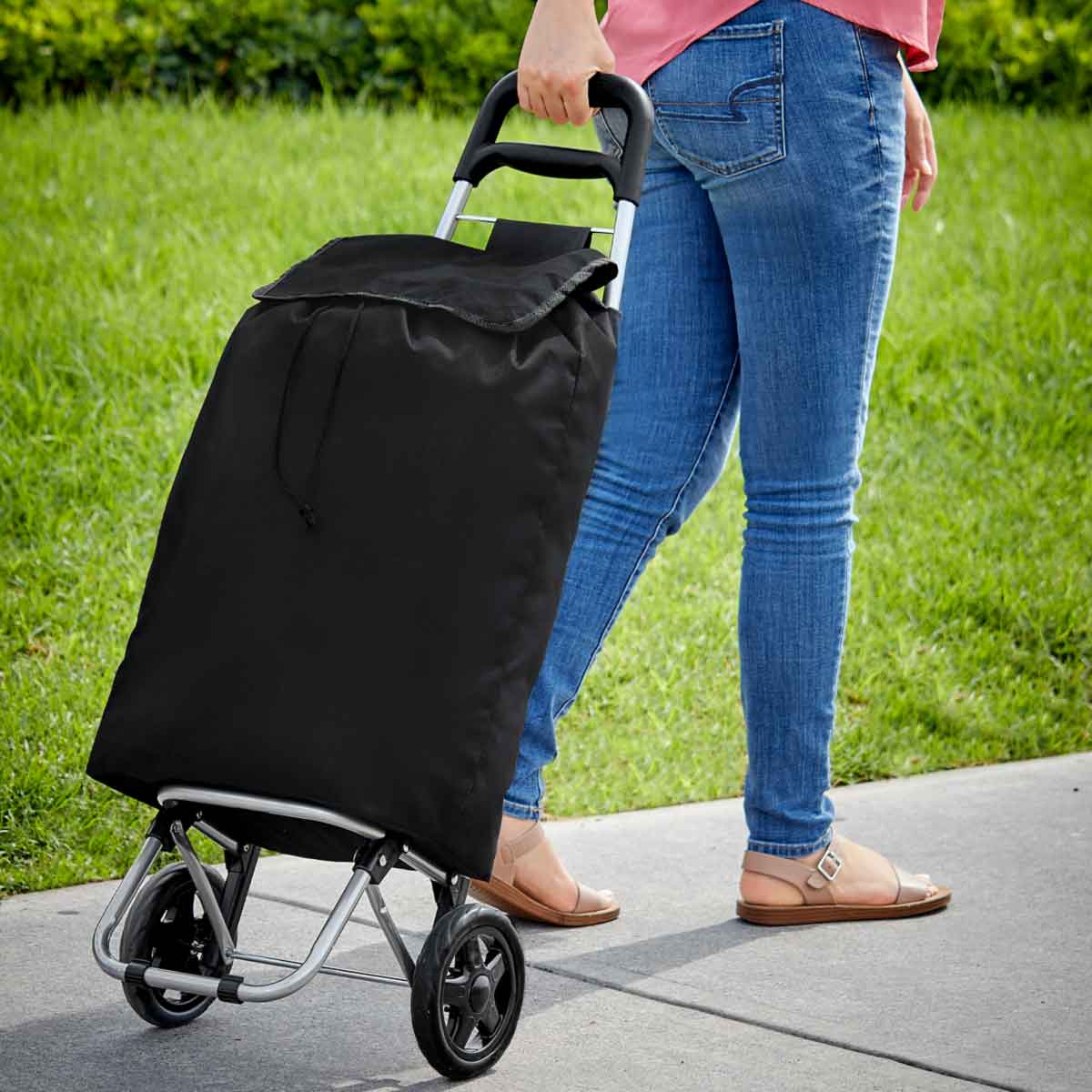 Bolsa para supermercado con jareta y solapa, bolsa posterior con cierre, estructura de metal, base para sostenerse, agarradera de plástico... Read more