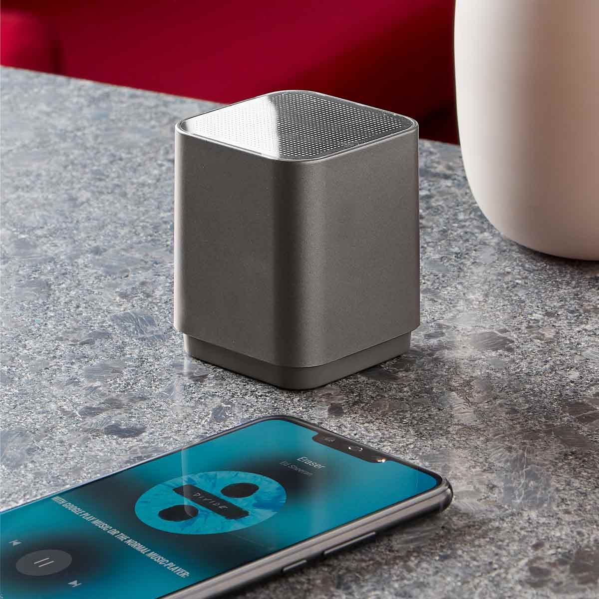 Bocina bluetooth con batería recargable. Cable cargador USB incluido. Logotipo se ilumina al grabar. Read more