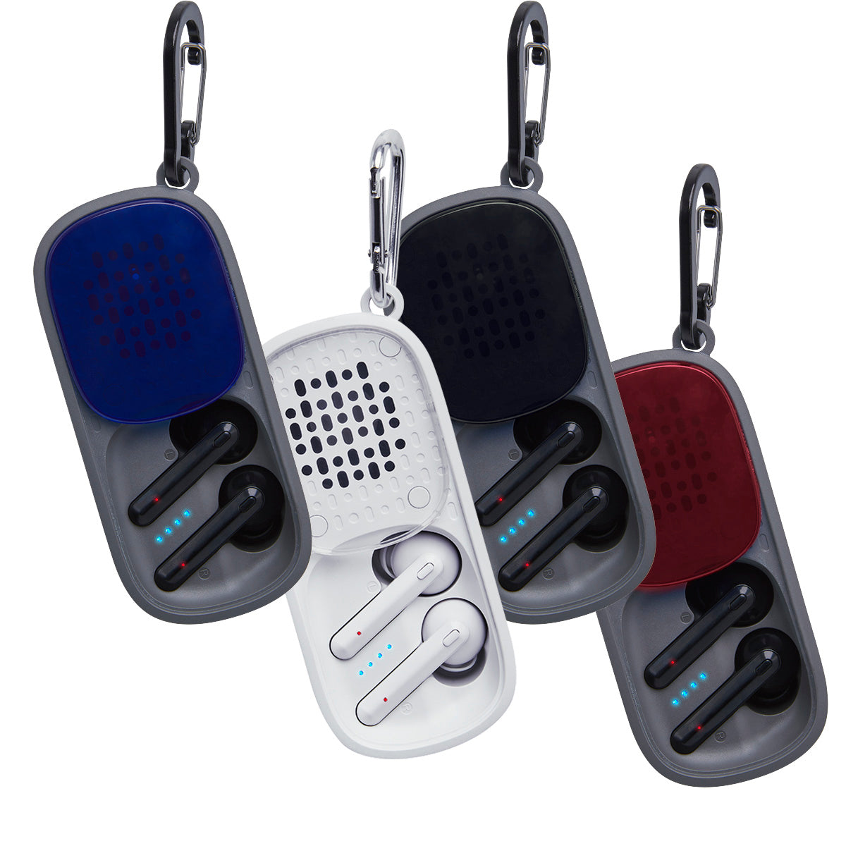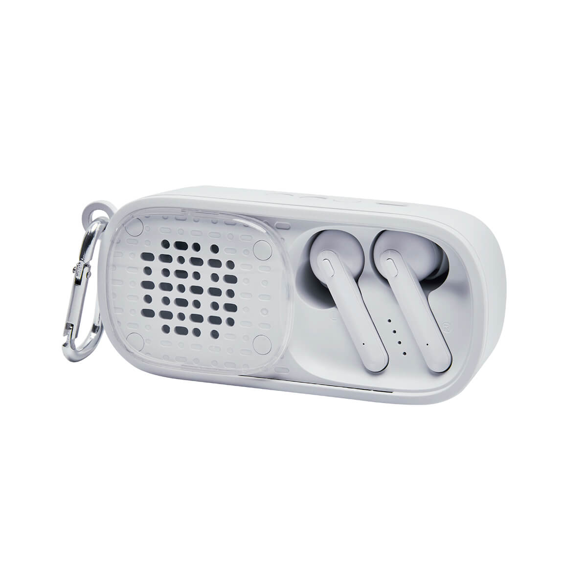 Bocina y audífonos bluetooth con batería recargable. Incluye cable cargador USB. Read more