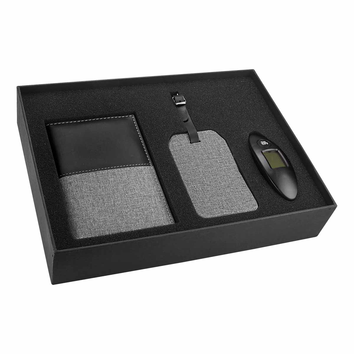 Incluye porta pasaporte, identificador de maleta con papel para datos y báscula con display digital con capacidad máxima de 40... Leer más...