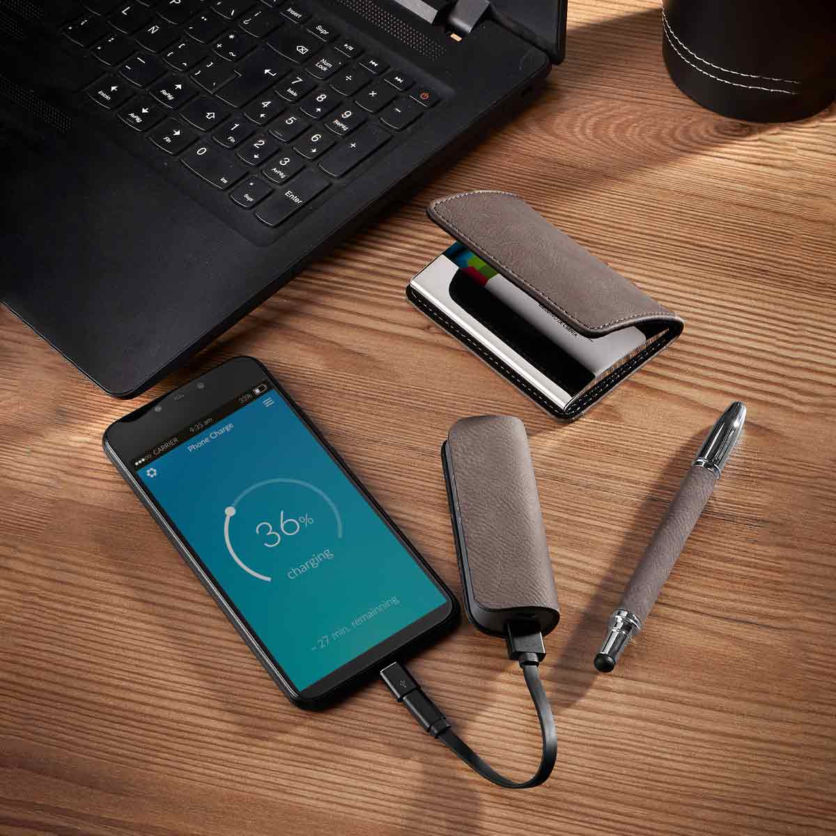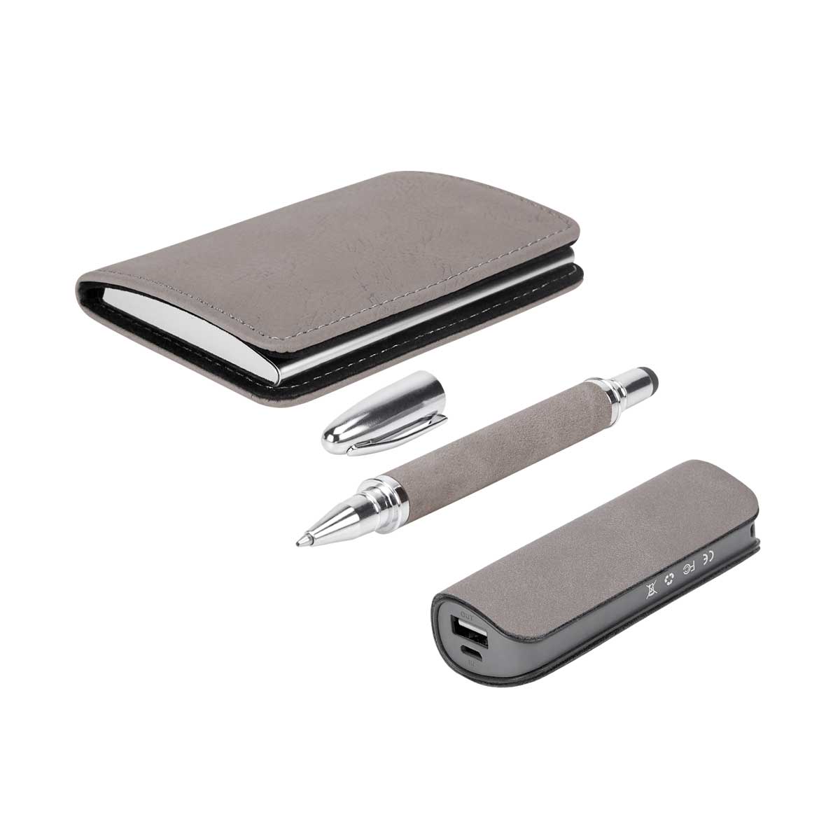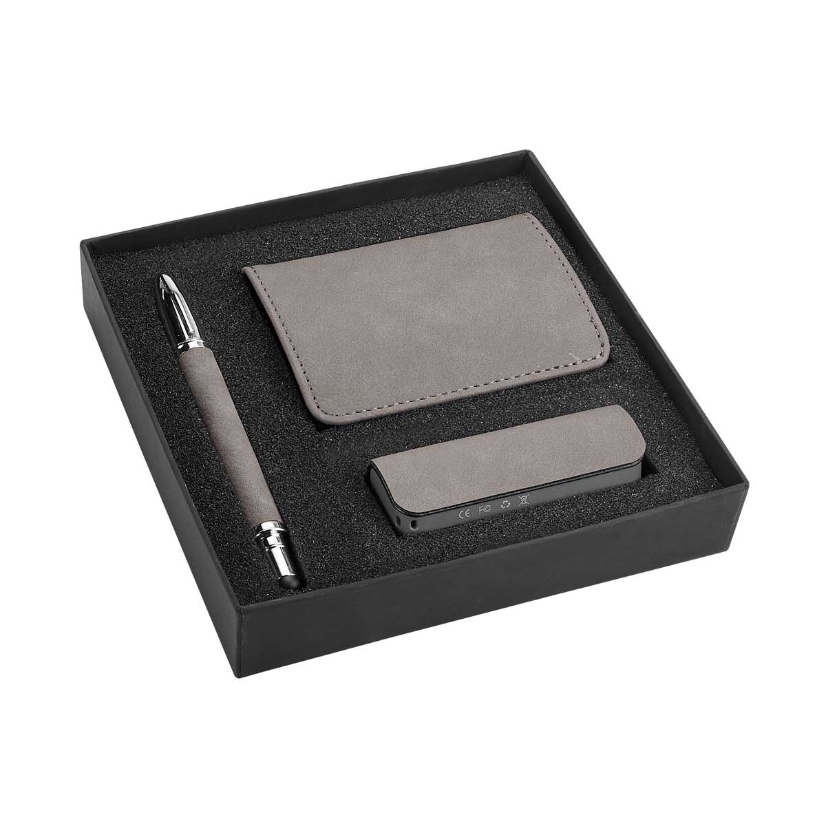 Incluye batería auxiliar para smartphone, capacidad 2,600 mAh, bolígrafo con touch screen, tarjetero terminado curpiel y caja de regalo. Leer más...