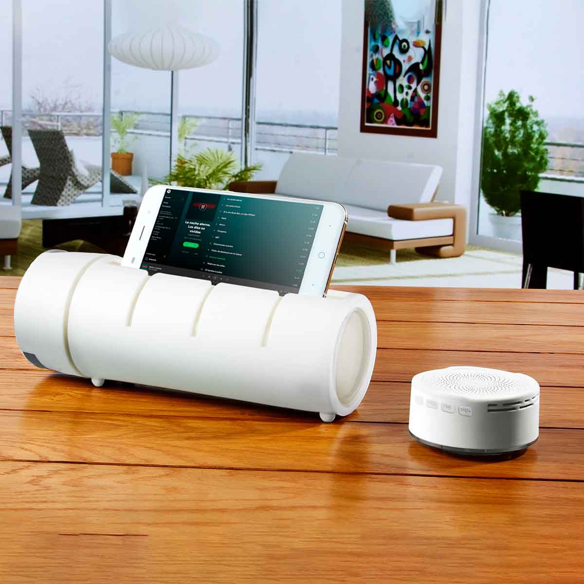 Cilindro con bocina bluetooth. Funcion manos libres. Controles integrados de volumen y reproducción de audio. Disparador de cámara al sincronizar... Leer más...