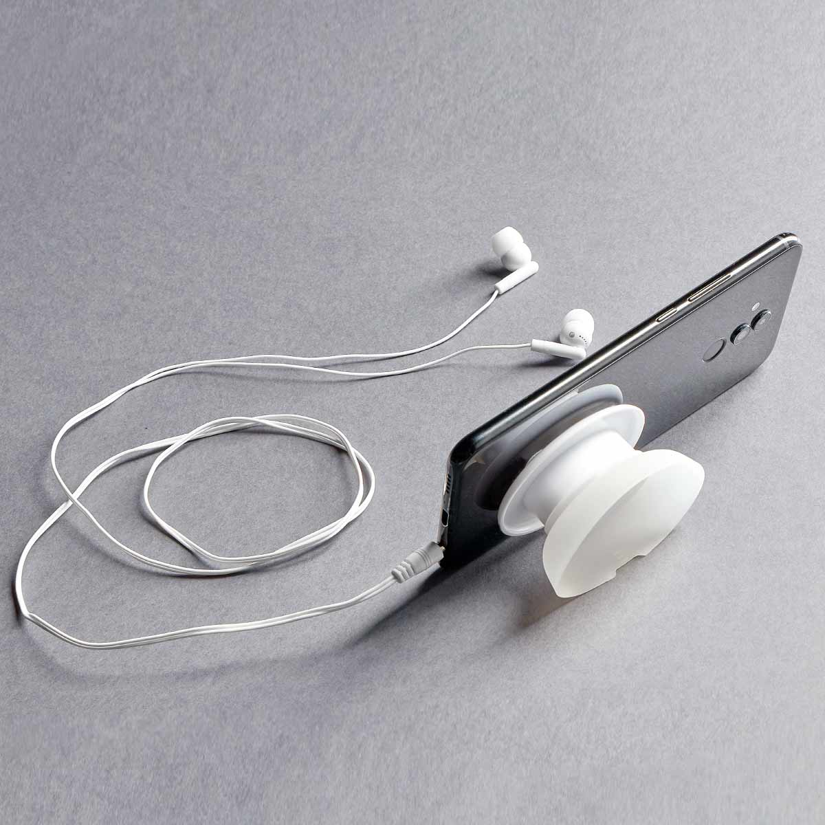 Audífonos enrollables, base con ventosa para fácil sujeción. Función soporte para smartphone. Leer más...
