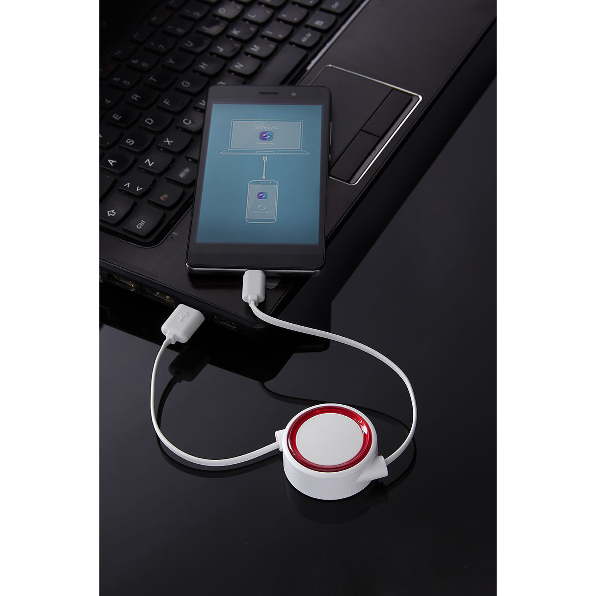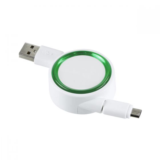 Cable retráctil cargador y para transferencia de datos. Compatible con USB y micro USB. Incluye placa y marco circulares. Longitud... Leer más...