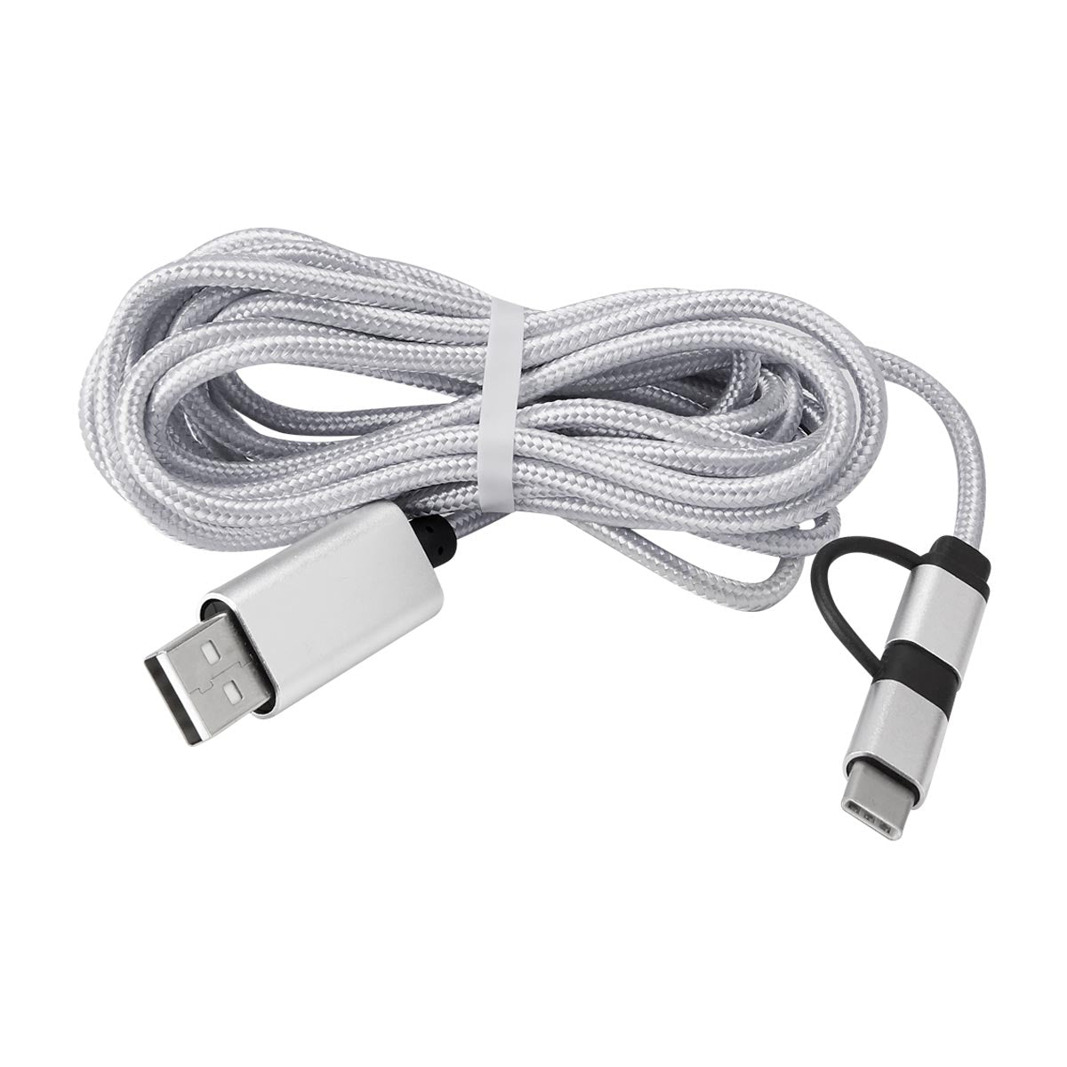 Cable cargador compatible con USB, 8 pin, micro USB y entrada tipo C. Longitud de cable 3 m aproximadamente. Incluye... Leer más...