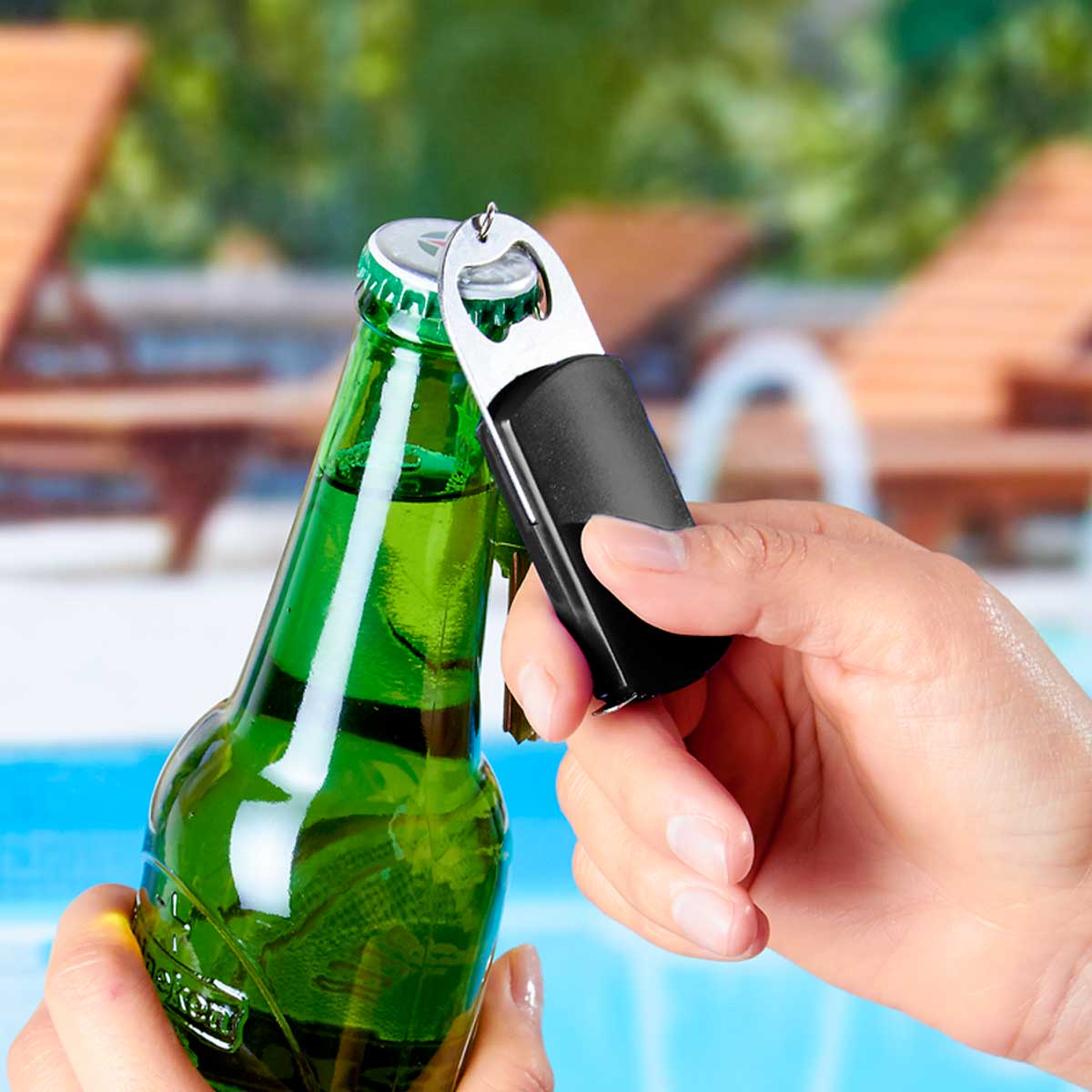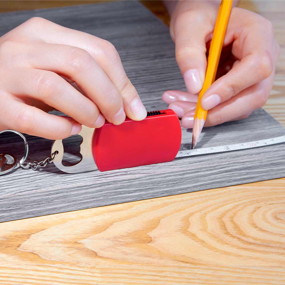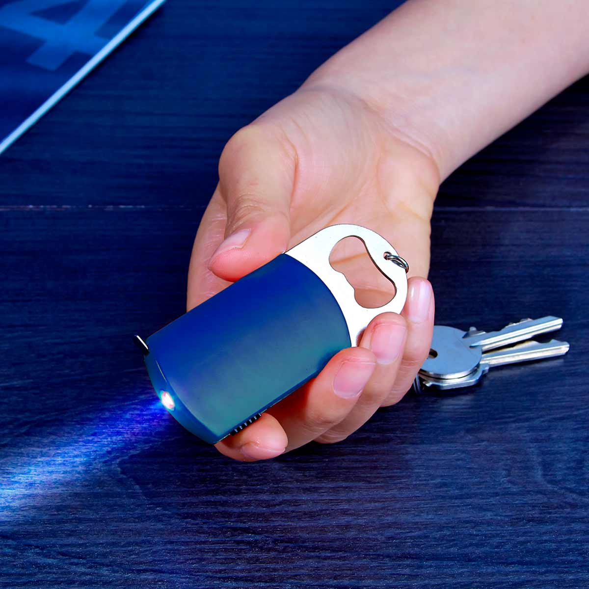 Llavero destapador con lámpara de 1 LED. Cinta metálica 1 m. Leer más...
