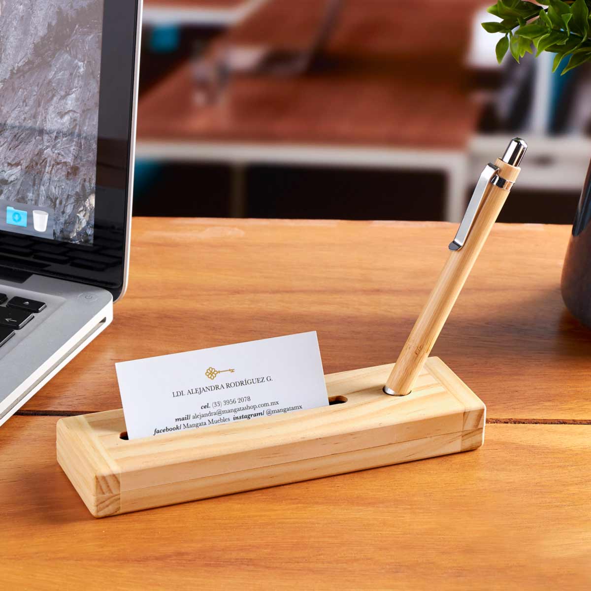 Bolígrafo y estuche de madera. Estuche con porta pluma y porta tarjetas. Leer más...