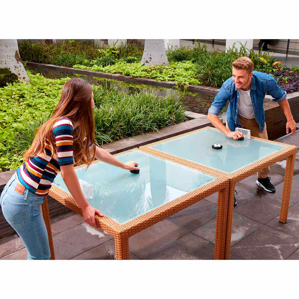 Juego de mesa. Incluye 2 manoplas, 2 porterías y un disco. Baterías (2 AAA) no incluidas. Leer más...