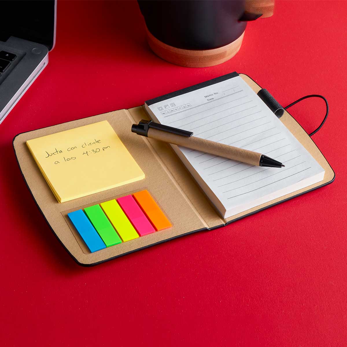 70 Hojas de raya. Incluye elástico para cerrar, notas adheribles de diferentes colores y bolígrafo ecológico. Leer más...