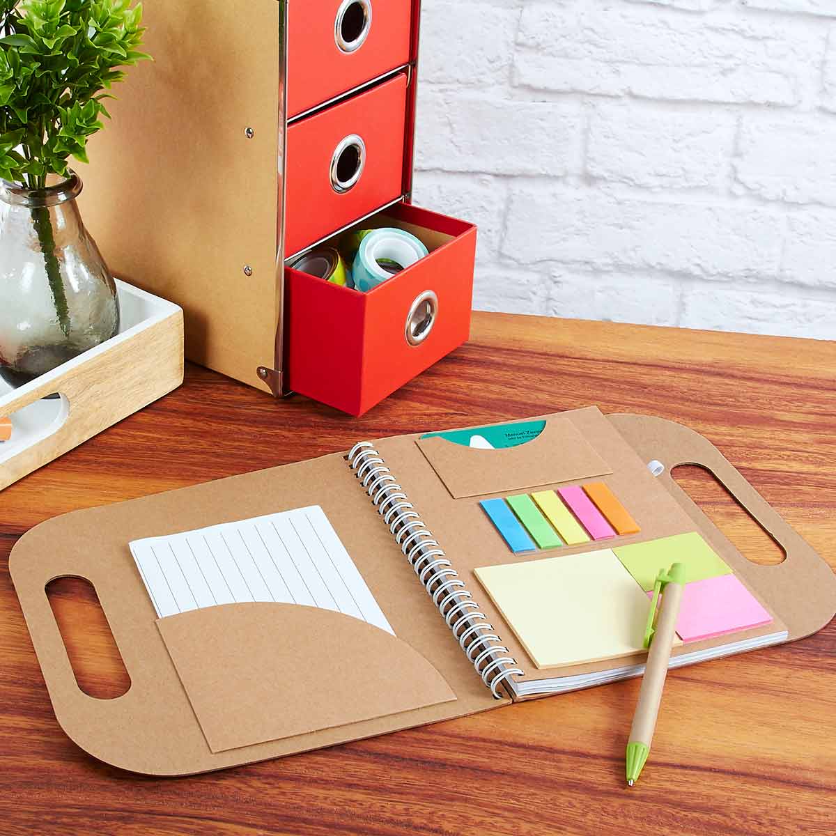 70 Hojas de raya. Incluye notas adheribles, bolígrafo ecológico, compartimento para tarjetas, sobre en contraportada y espiral metálico doble. Leer más...