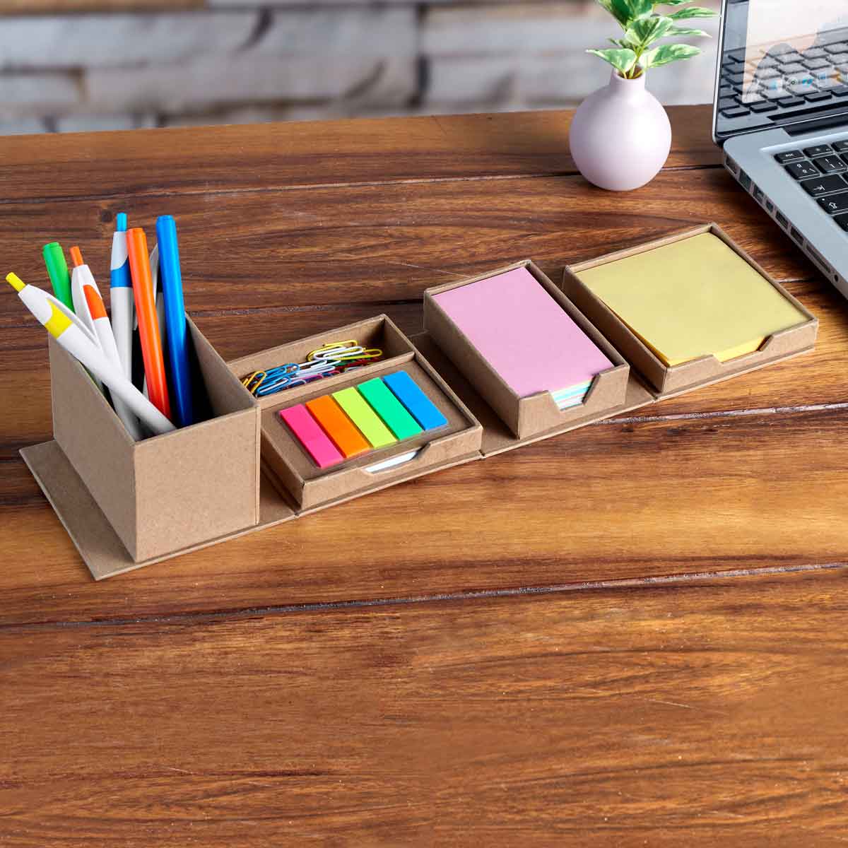 Incluye porta plumas, clips, 150 notas adheribles amarillas, 50 hojas de notas blancas, 100 hojas de notas multicolor y banderas... Leer más...