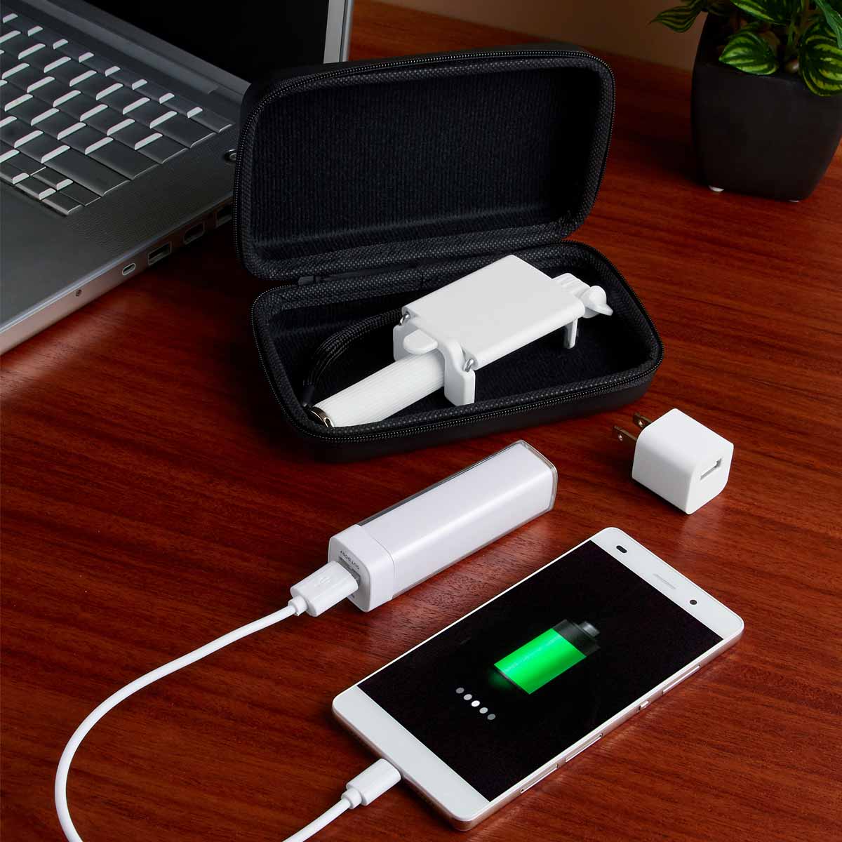 Incluye mini selfie stick, batería auxiliar de 2,200 mAh con cable USB-Micro USB, adaptador de corriente con entrada USB y... Leer más...