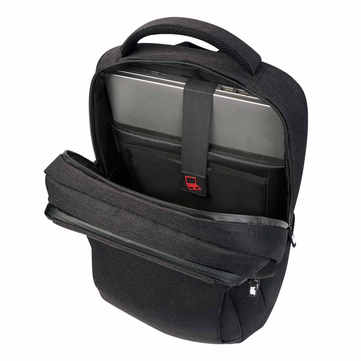 Bolsa principal con espacio para laptop y tablet. Compartimento con organizador. Bolsa frontal con cierre. 2 Bolsas laterales. Aditamento especial... Leer más...