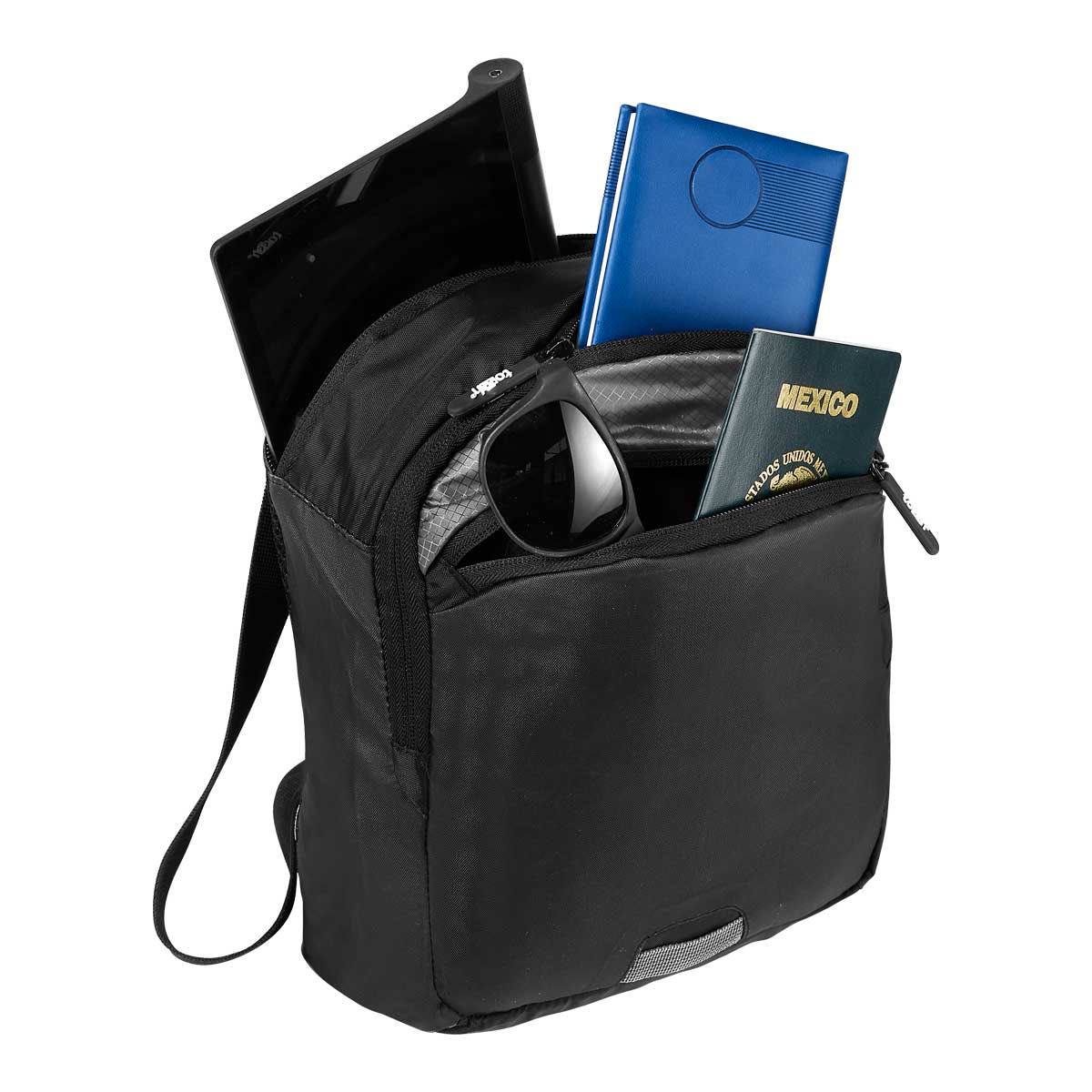 Bolsa principal con un compartimento. Bolsa frontal. Bolsa trasera para tablet. Incluye correa. Leer más...