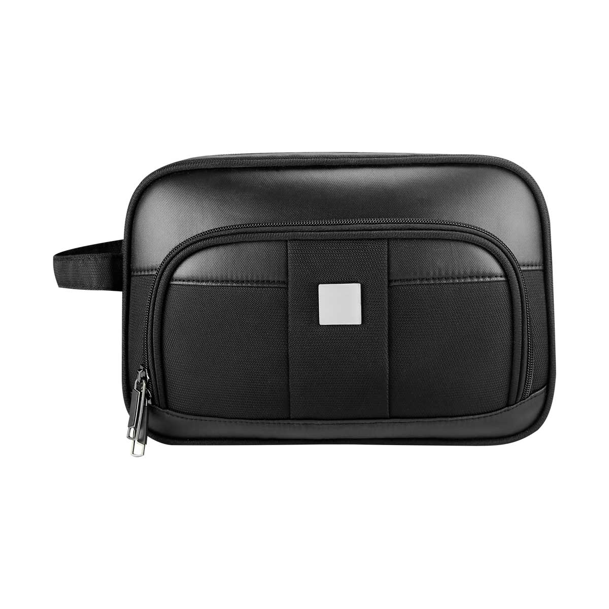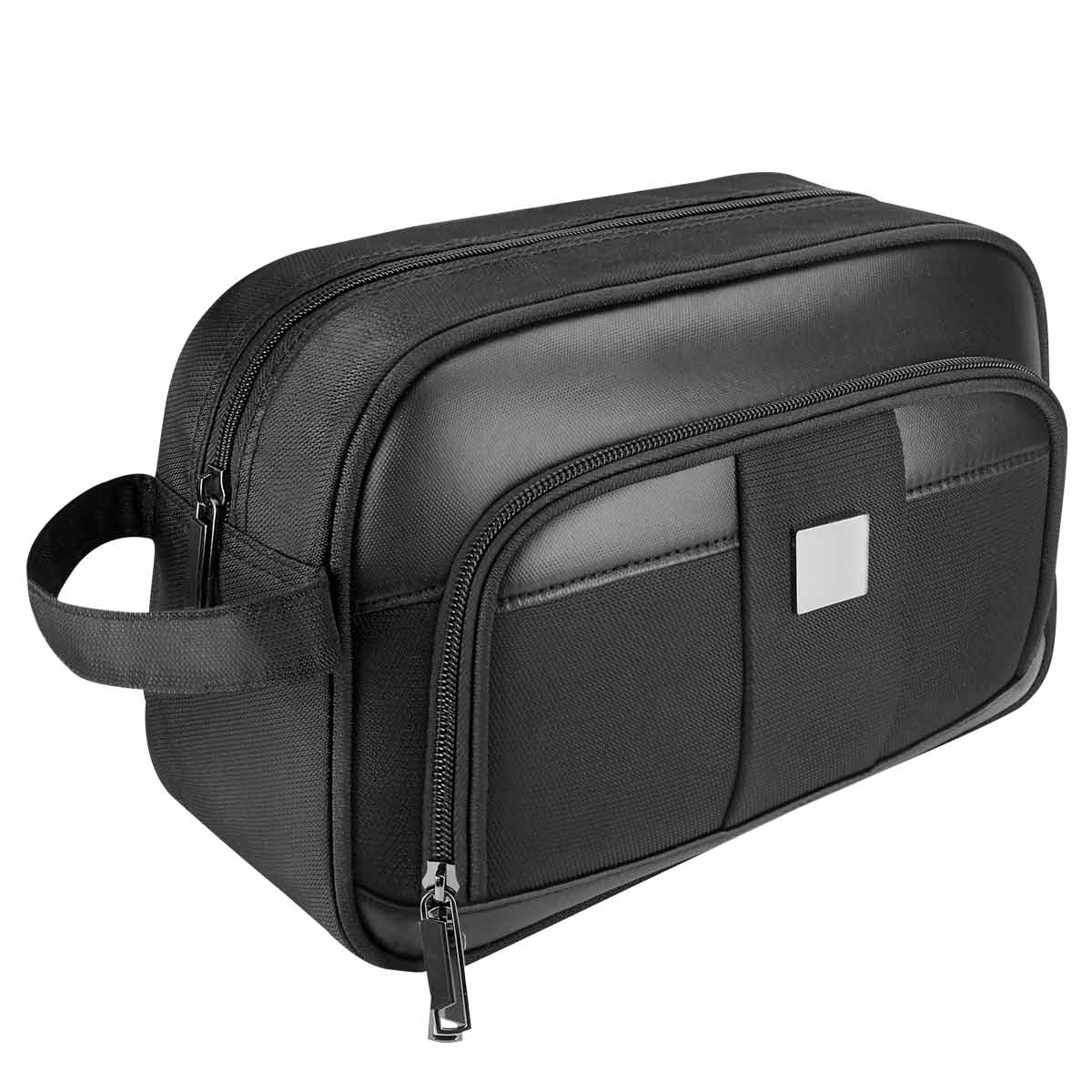 Neceser con cierre y asa en el exterior. Incluye compartimento frontal con doble cierre. Placa metálica removible para fácil grabado. Leer más...