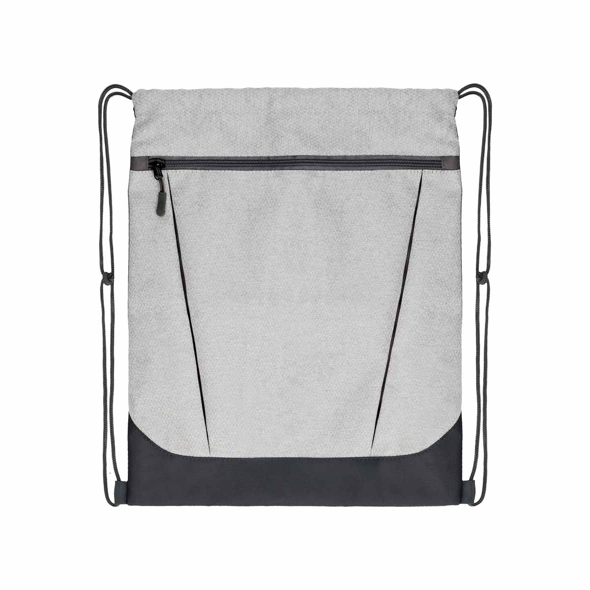 Bolsa-mochila gris, material jaspeado, bolsillo frontal con cierre, con tirantes de cordón y cerrado de jareta. Leer más...