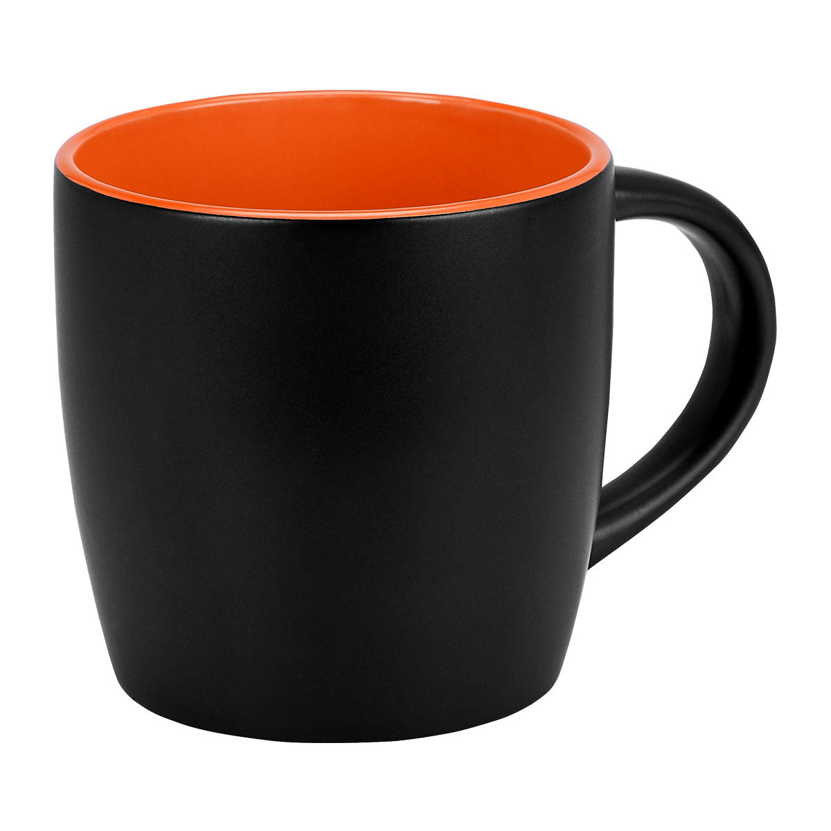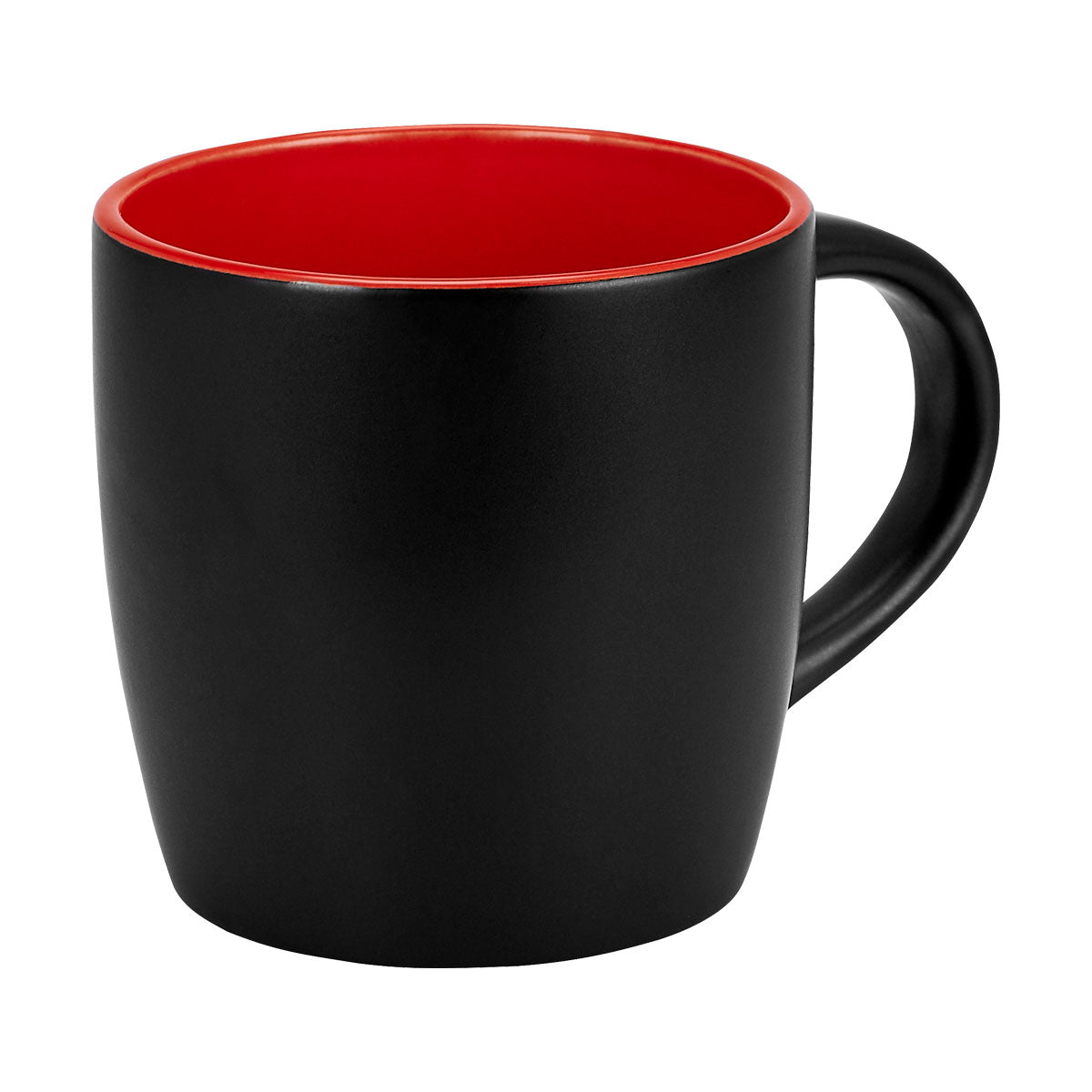 Taza de cerámica interior de color y exterior negro. Terminando mate.