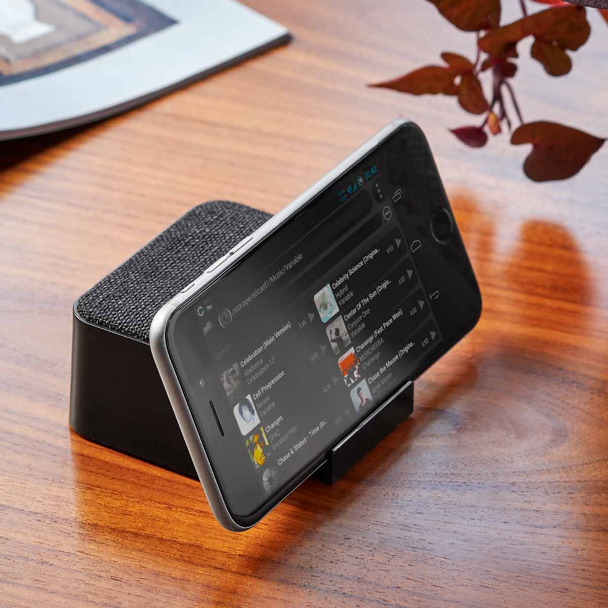Bocina bluetooth con batería recargable de 3 hrs de reproducción aproximadamente. Incluye base porta celular plegable y cable cargador USB. Leer más...