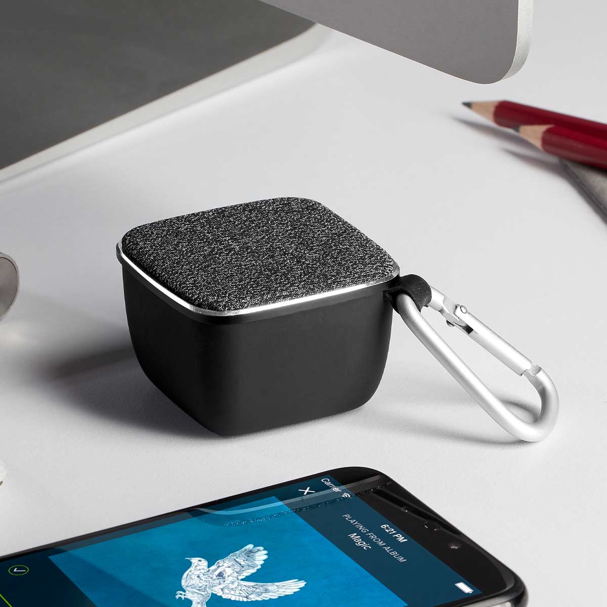 Bocina bluetooth con batería recargable de 3 hrs de reproducción aproximadamente. Incluye carabina y cable cargador USB. Leer más...
