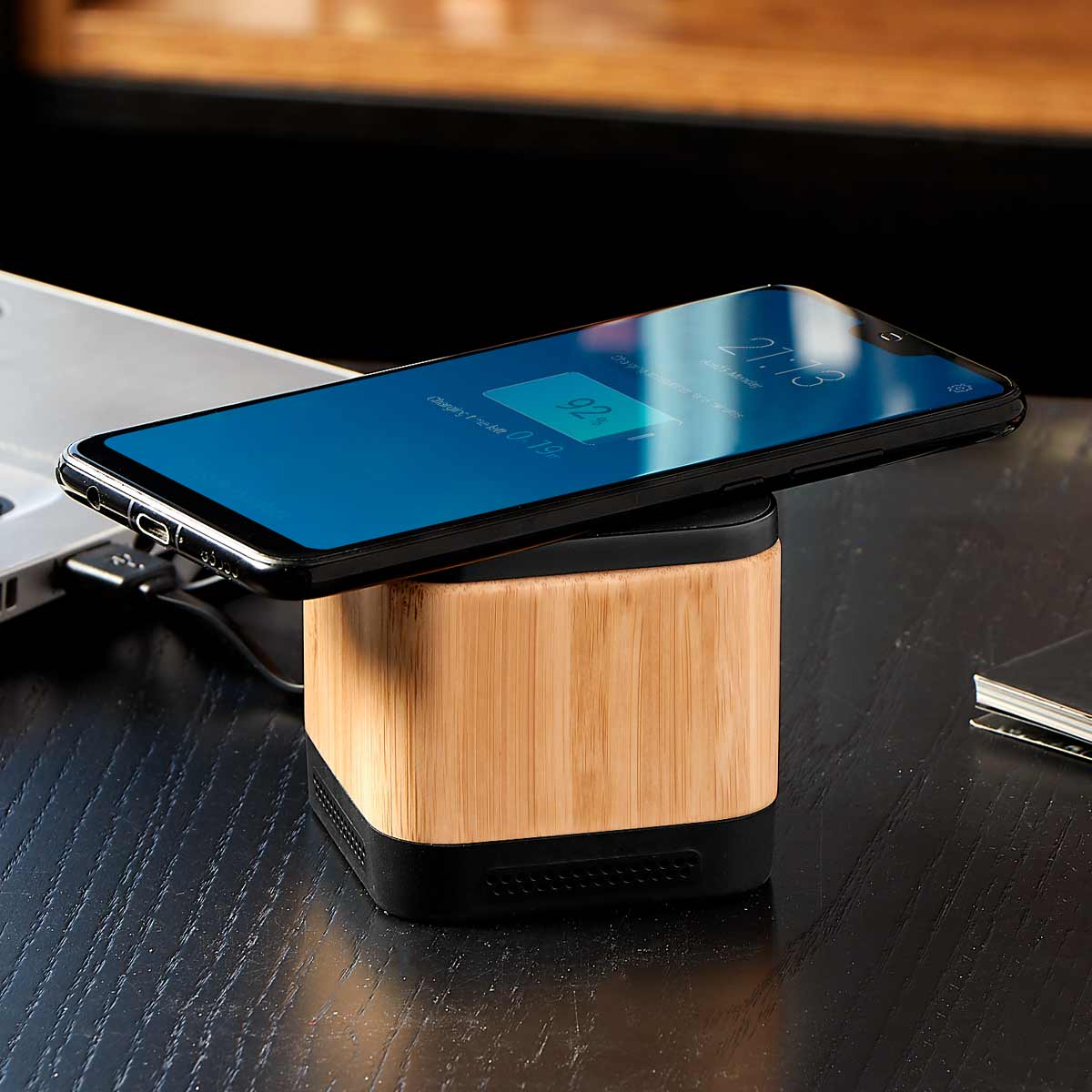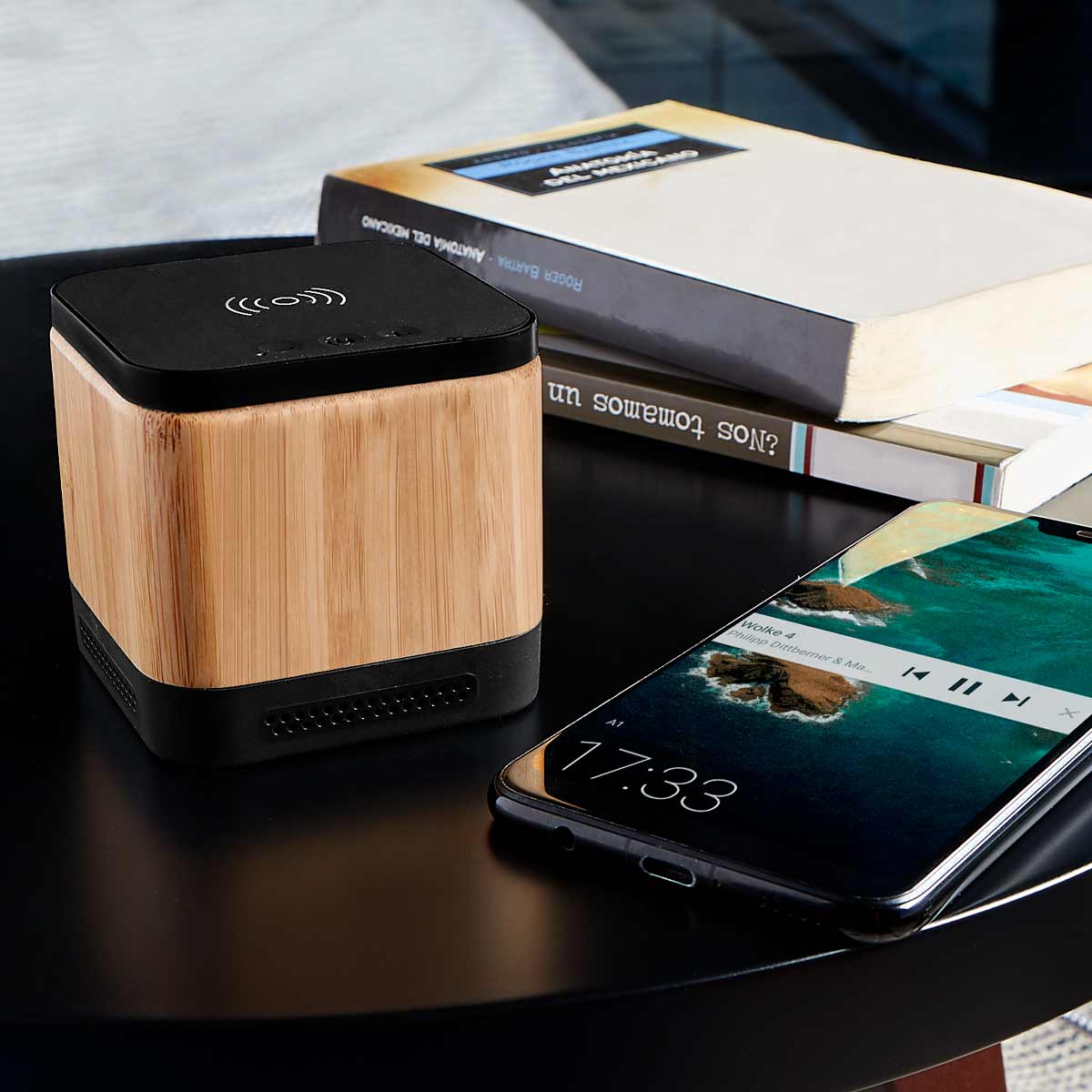 Bocina bluetooth con batería recargable de 4 hrs de reproducción aproximadamente. Incluye función de carga inalámbrica al estar conectada. Incluye... Leer más...